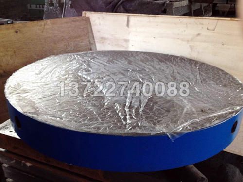 材料为铸铁HT20-40,工作面硬度为HB770-240。经过两次处理(人工退火600°-700°和自然时效2-8年),使该产品的精度稳定,不易磨损性能好。圆形平板(平台)可用涂色法检验零件平面度,具有准确、直观、方便的优点。