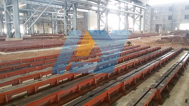 4、将地轨支承点垫好、垫平,包管每个支撑点受力平均,包管整个地轨平稳。