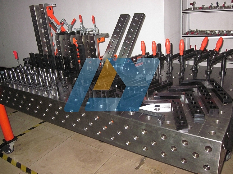 三维柔性工装平台是根据机械加工中焊接夹具的原理构思而成,通过平台基础班与槽型孔附件,附件与附件相互搭配连接,能够形成一套焊接组合工装。