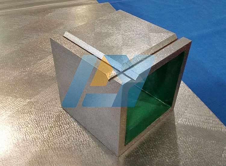 铸铁方箱主要用于零部件的平行度、垂直度等的检验和划线。方箱是用铸铁或钢材制成的具体6个工作面的空腔正方体,其中一个工作面上有V型槽。